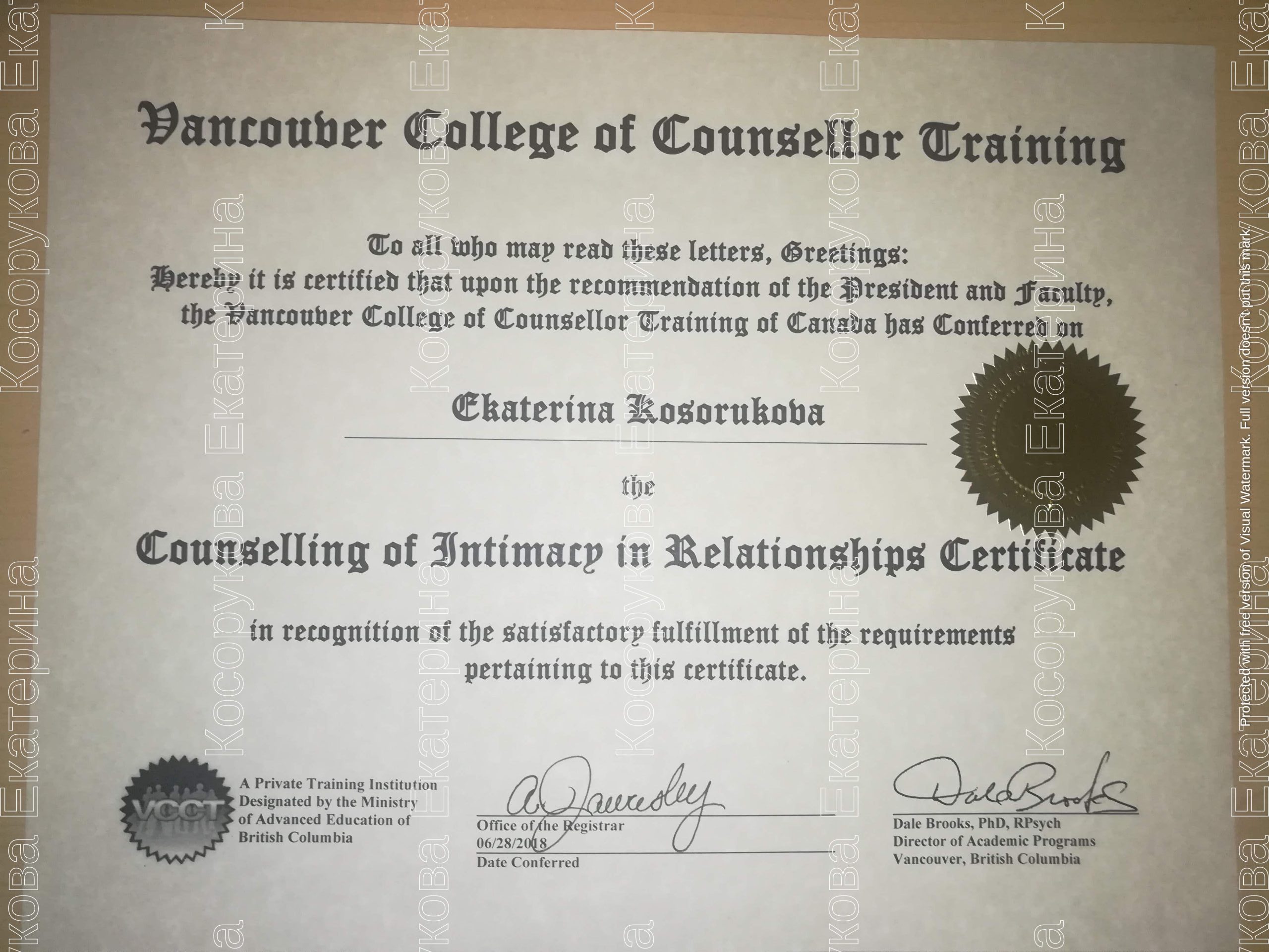 ▶ Counselling of Intimacy in Relationships program in VCCT Vancouver College for Counsellor Training, Canada.